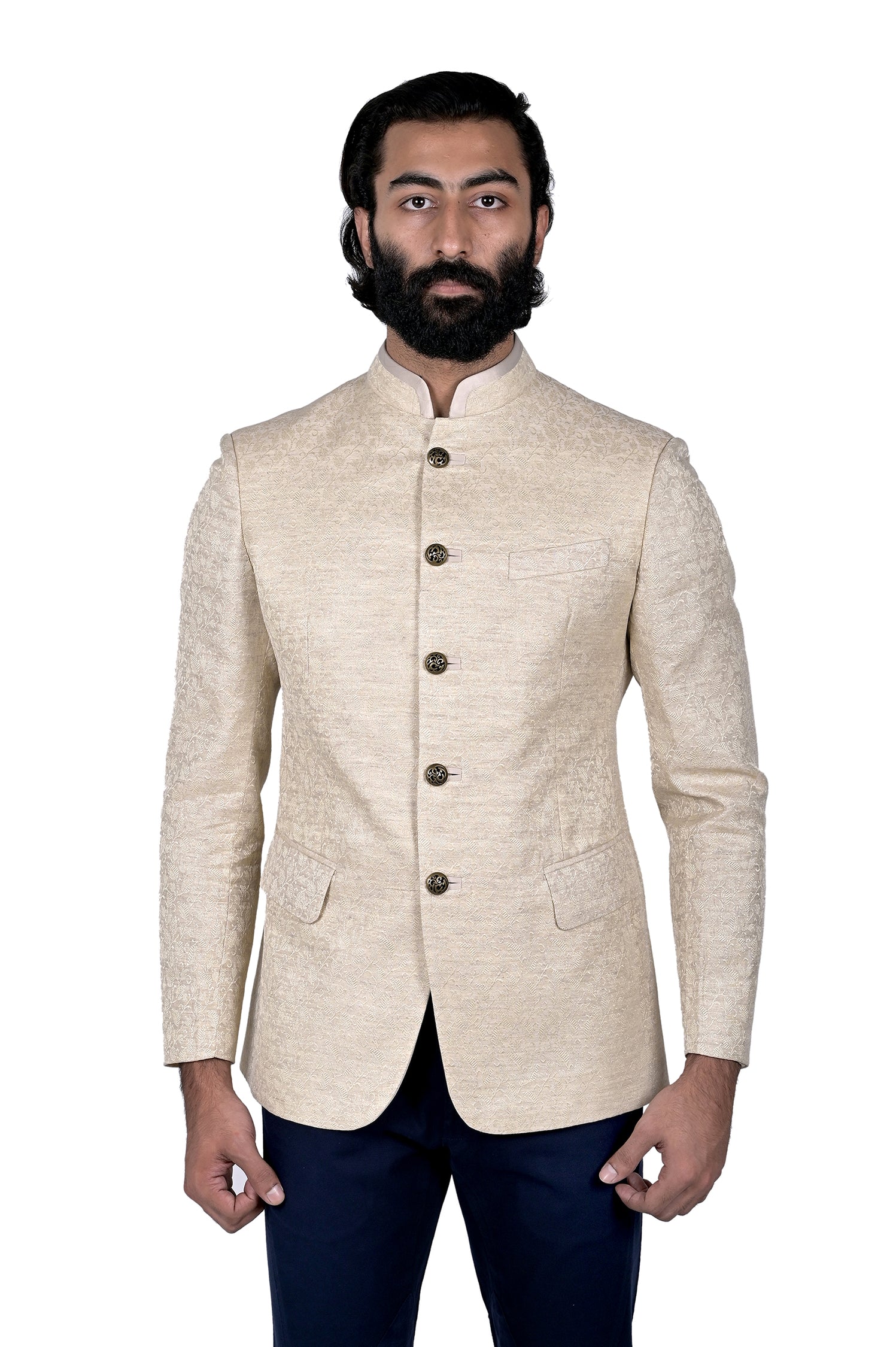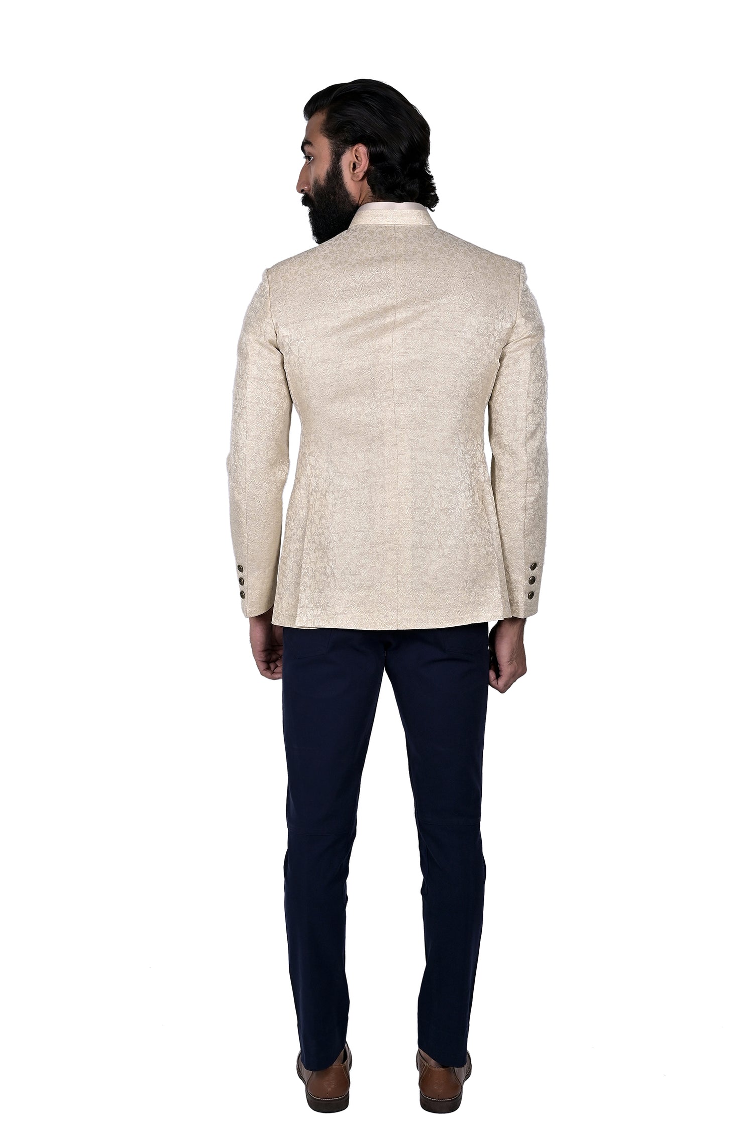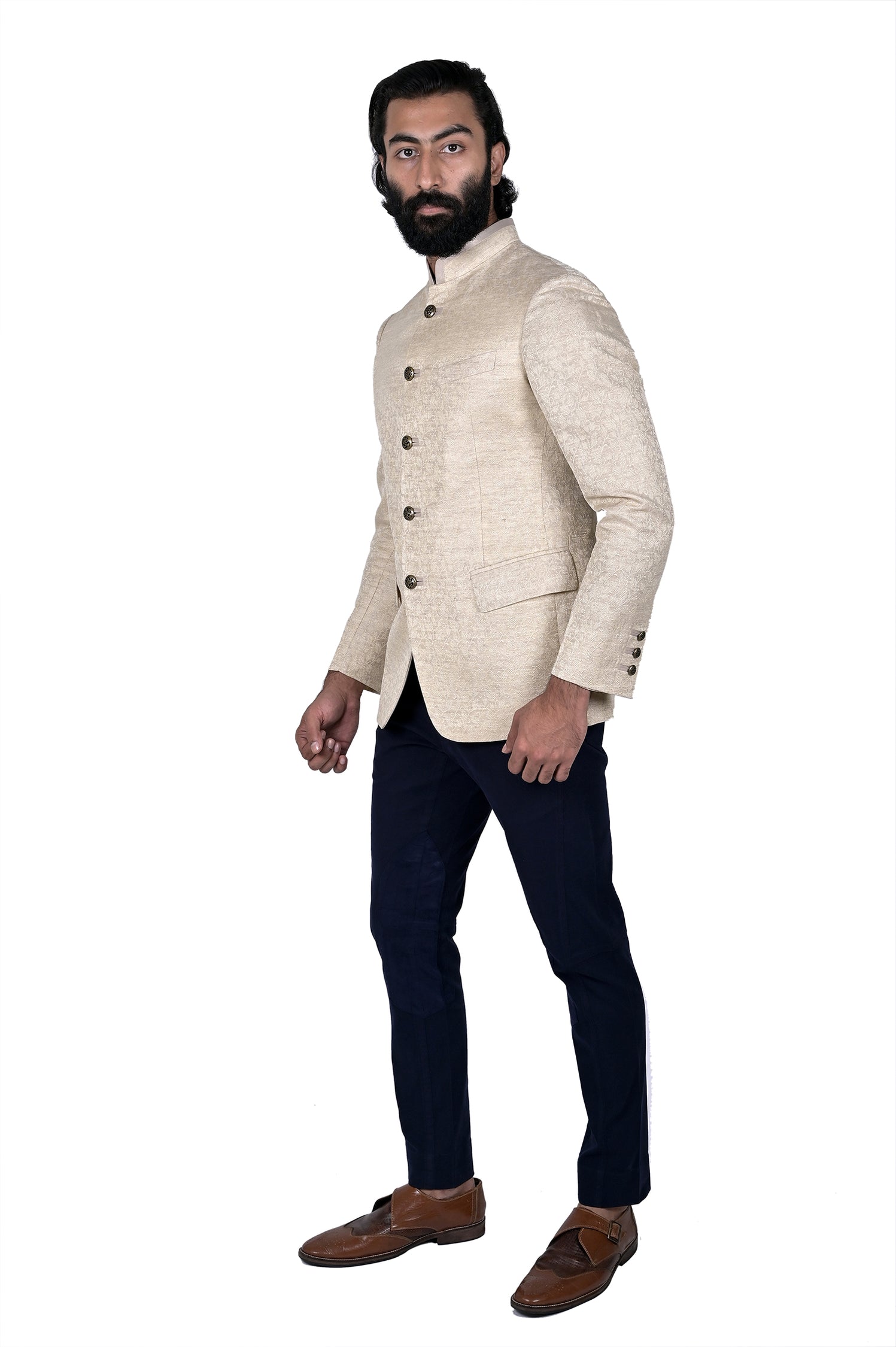 Beige/Gold Jacquard Jodhpuri Bandhgala