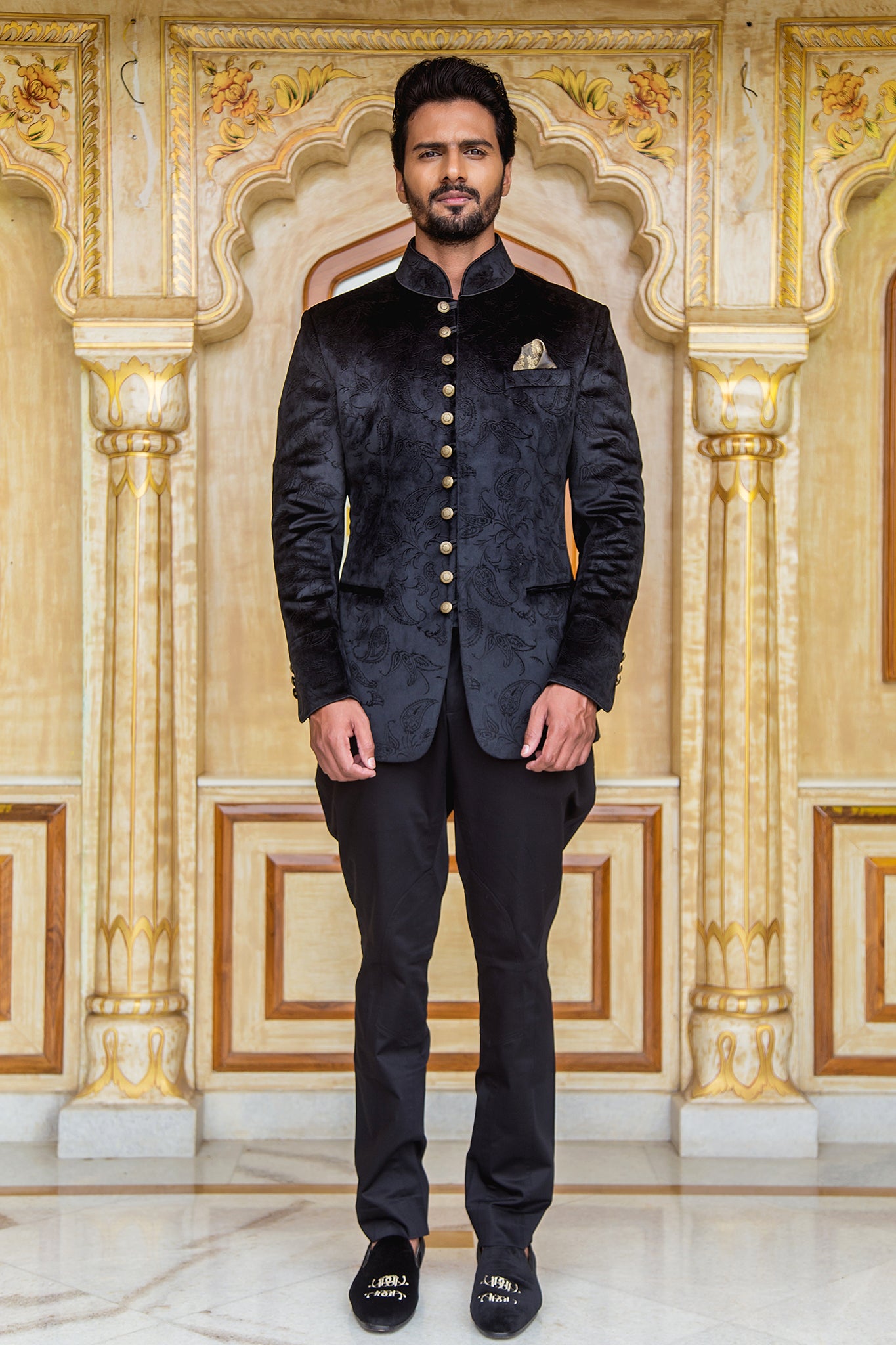 Black Paisley Velvet Jodhpuri