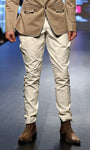 Cream Slim Fit Cotton Breeches w Side Button