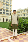 Cream Green Jaal Printed Linen Silk Half Jacket