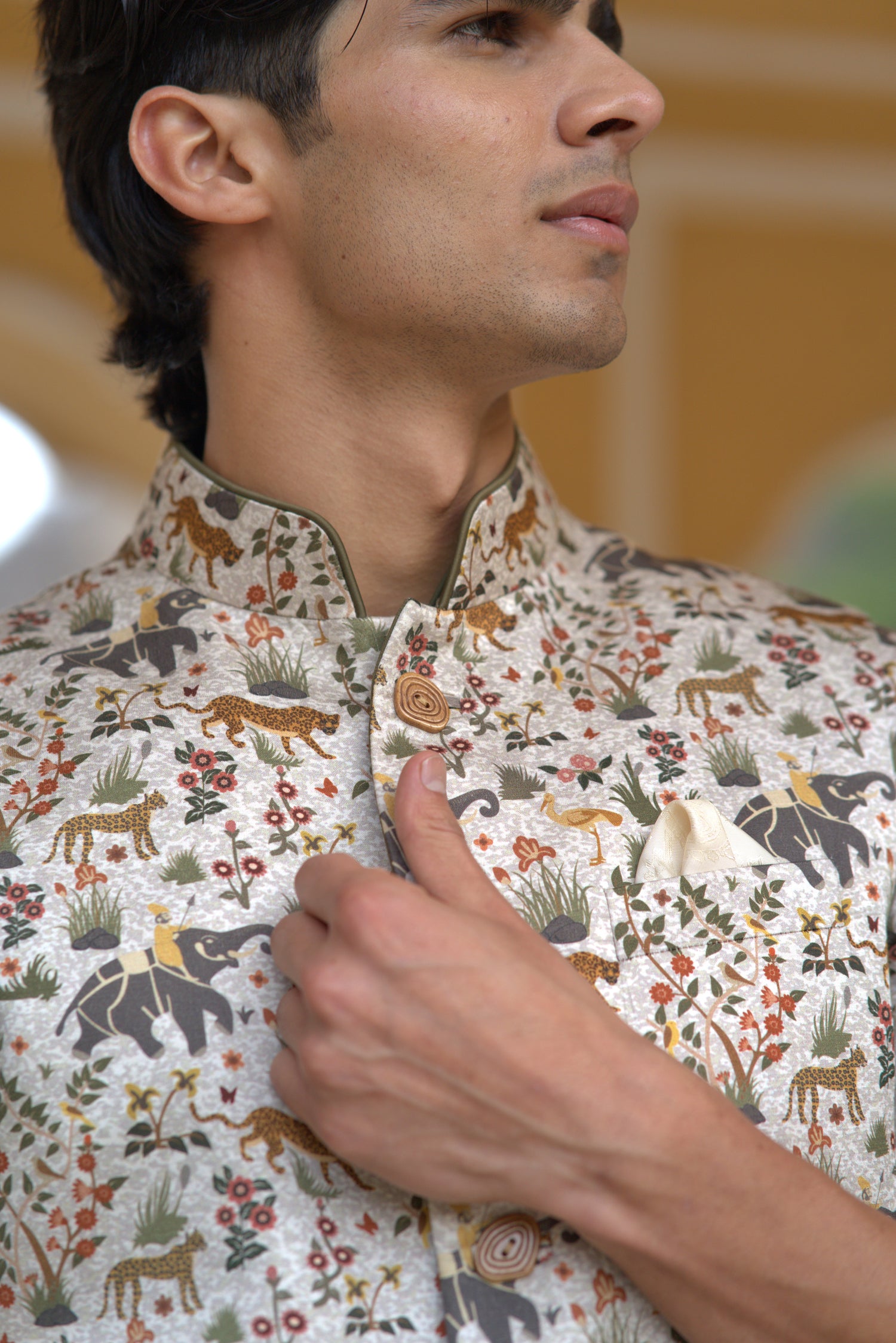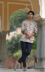 Cream Linen Silk Jungle Printed Half Jacket