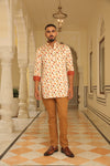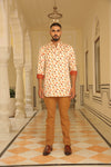 Cream Multicolour Leaf Print Linen Silk Kurta