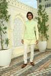 Green Yellow Leaf Print Linen Silk Half Jacket