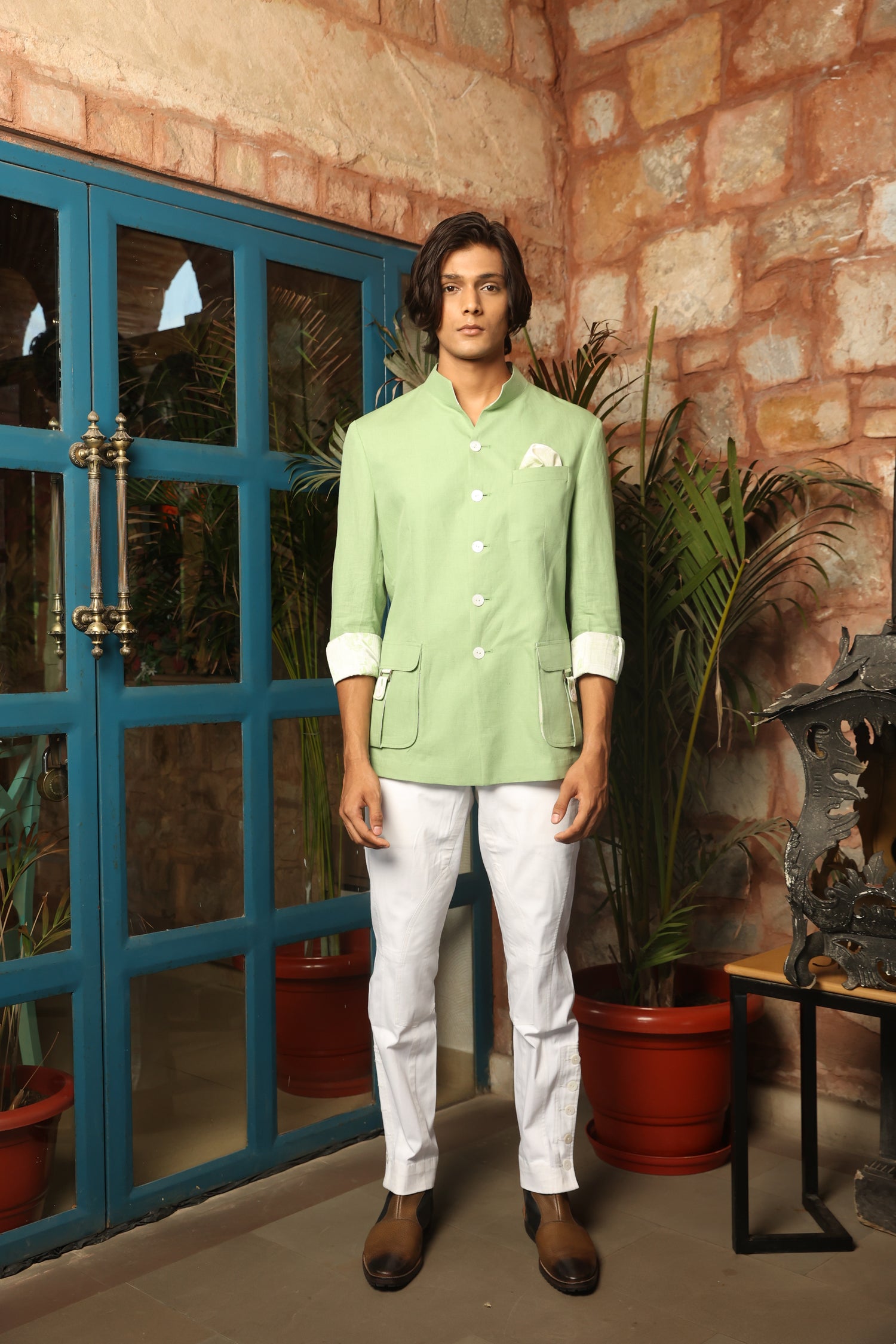 Light Green Linen Hunting Safari