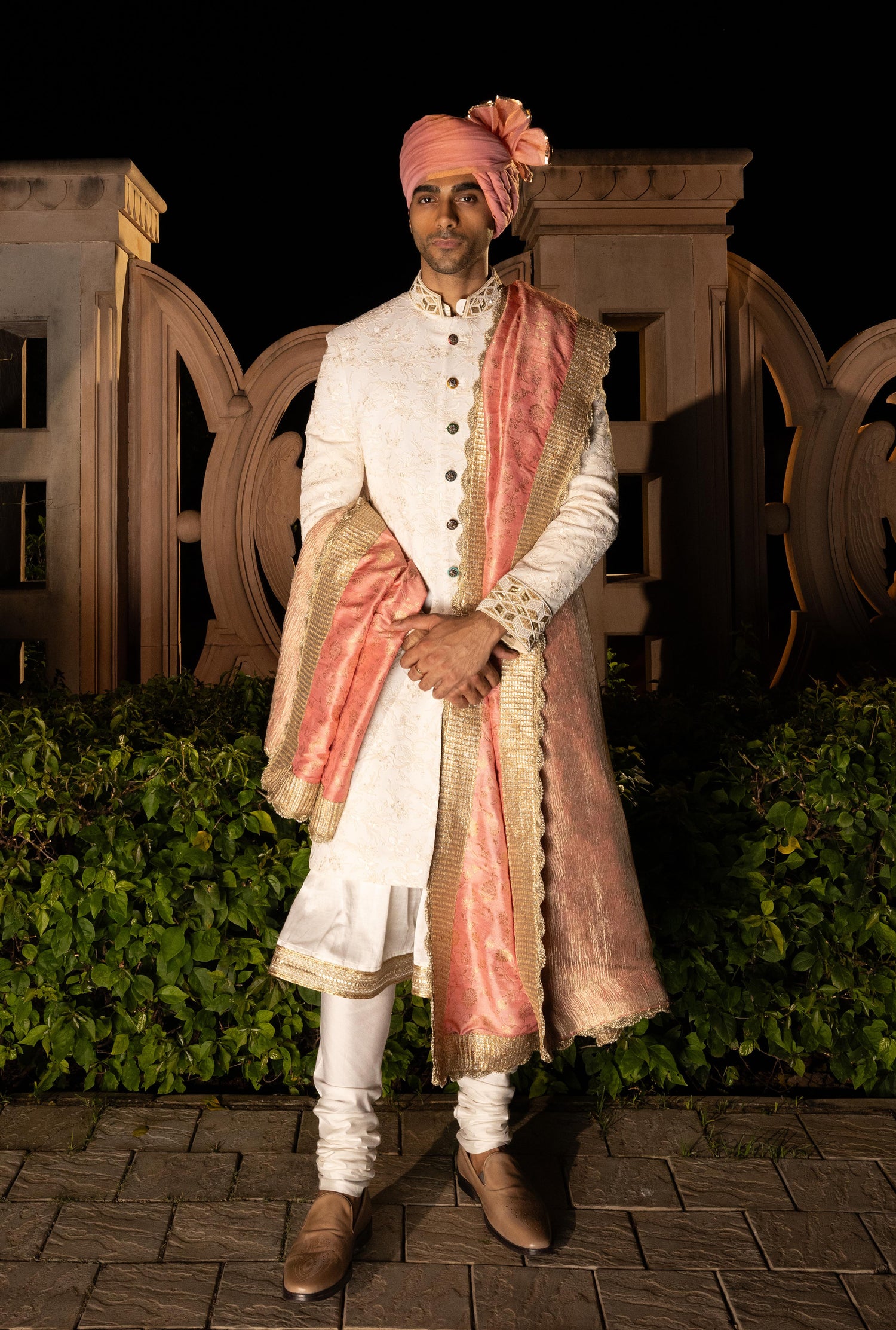 Off White Gold Floral Embroidered Sherwani