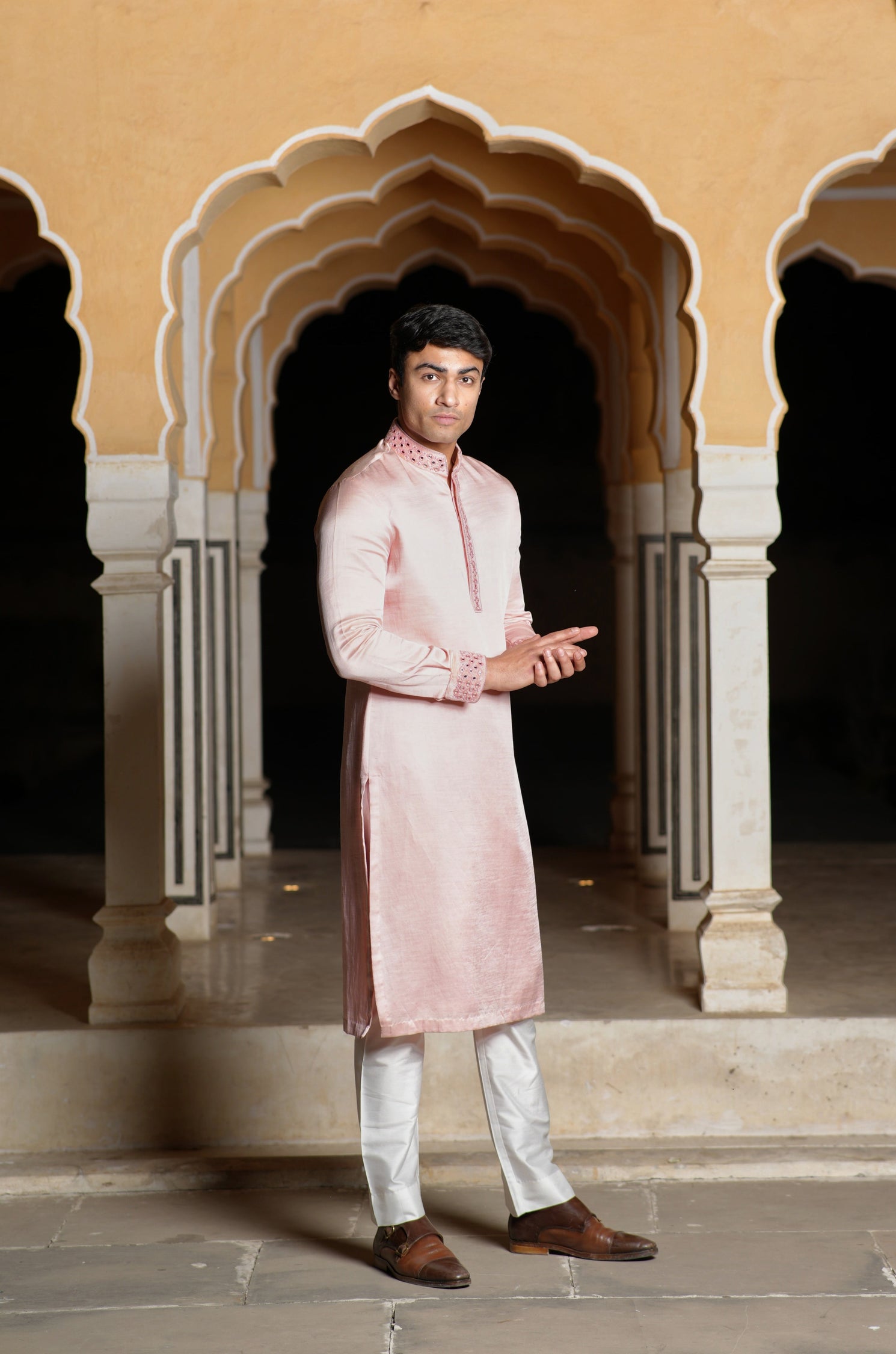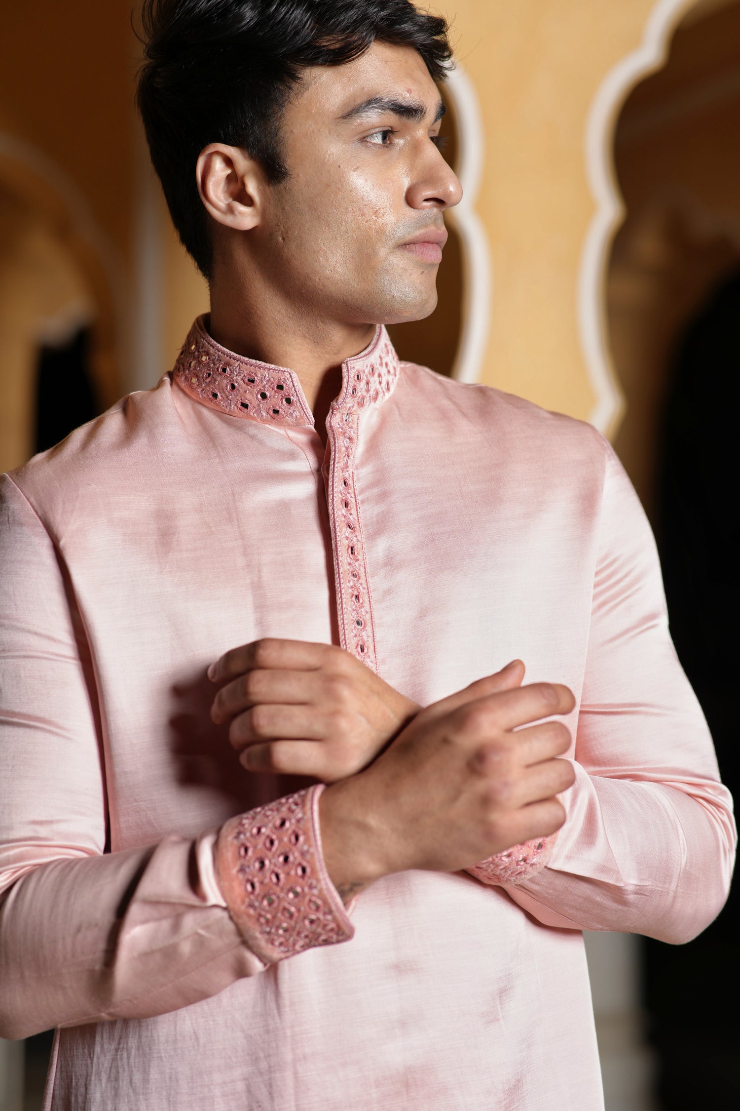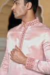 Peach Linen Silk Mirror Work Kurta