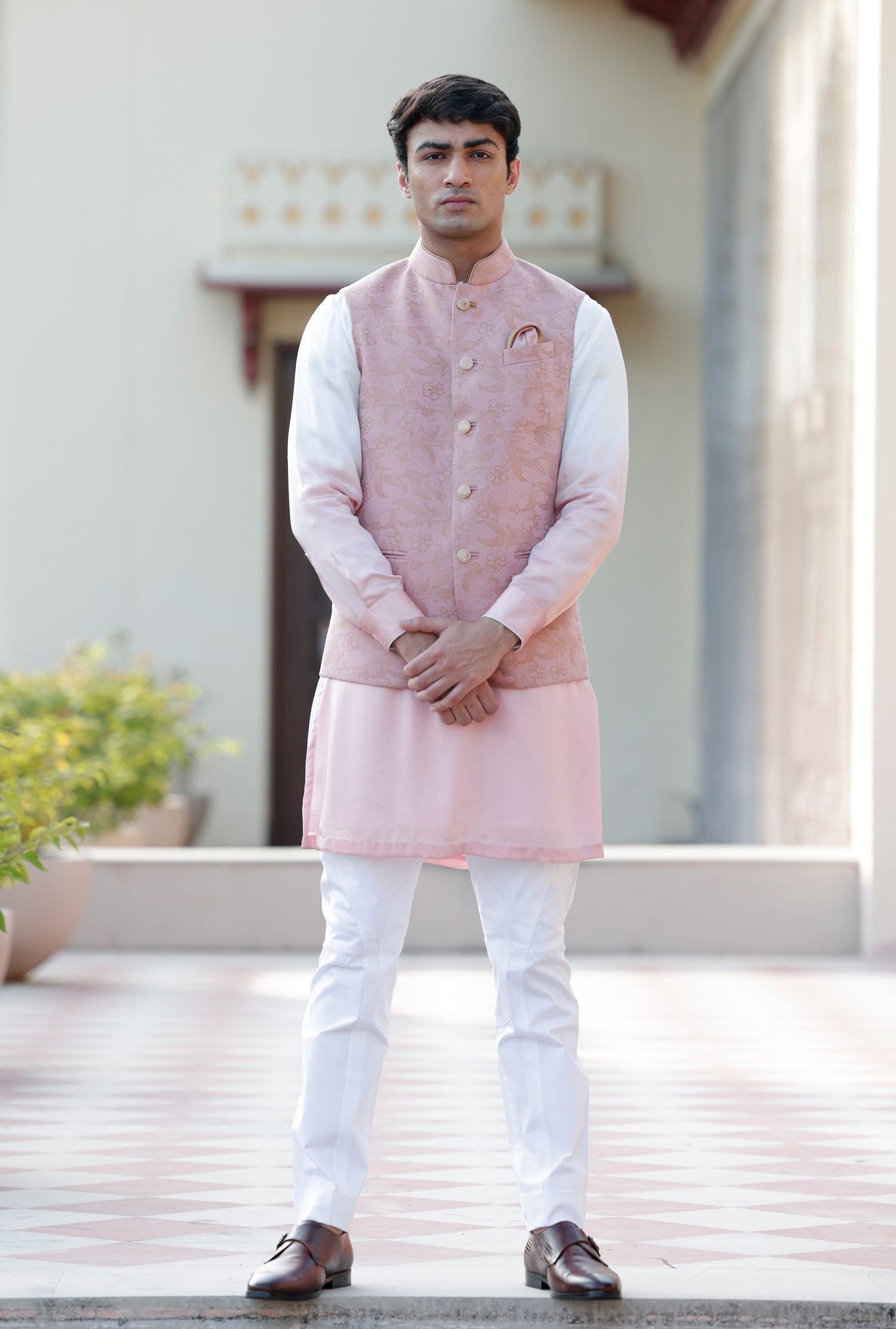 Pink Gold Floral Half Jacket