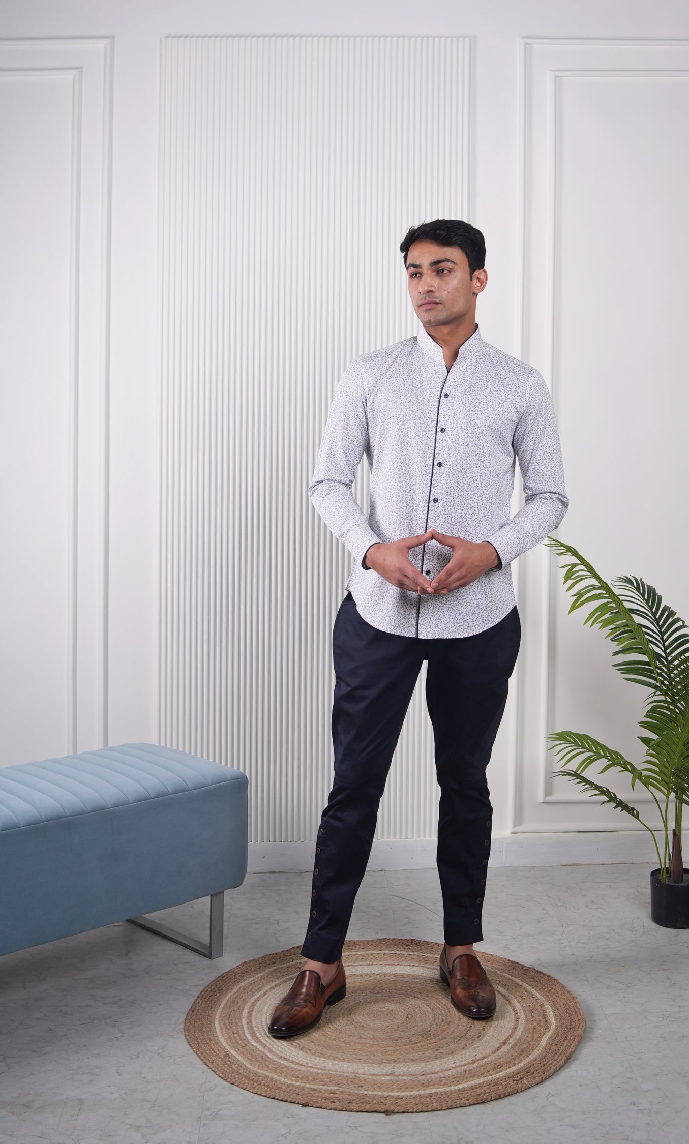White Blue Floral Printed Cotton Shirt